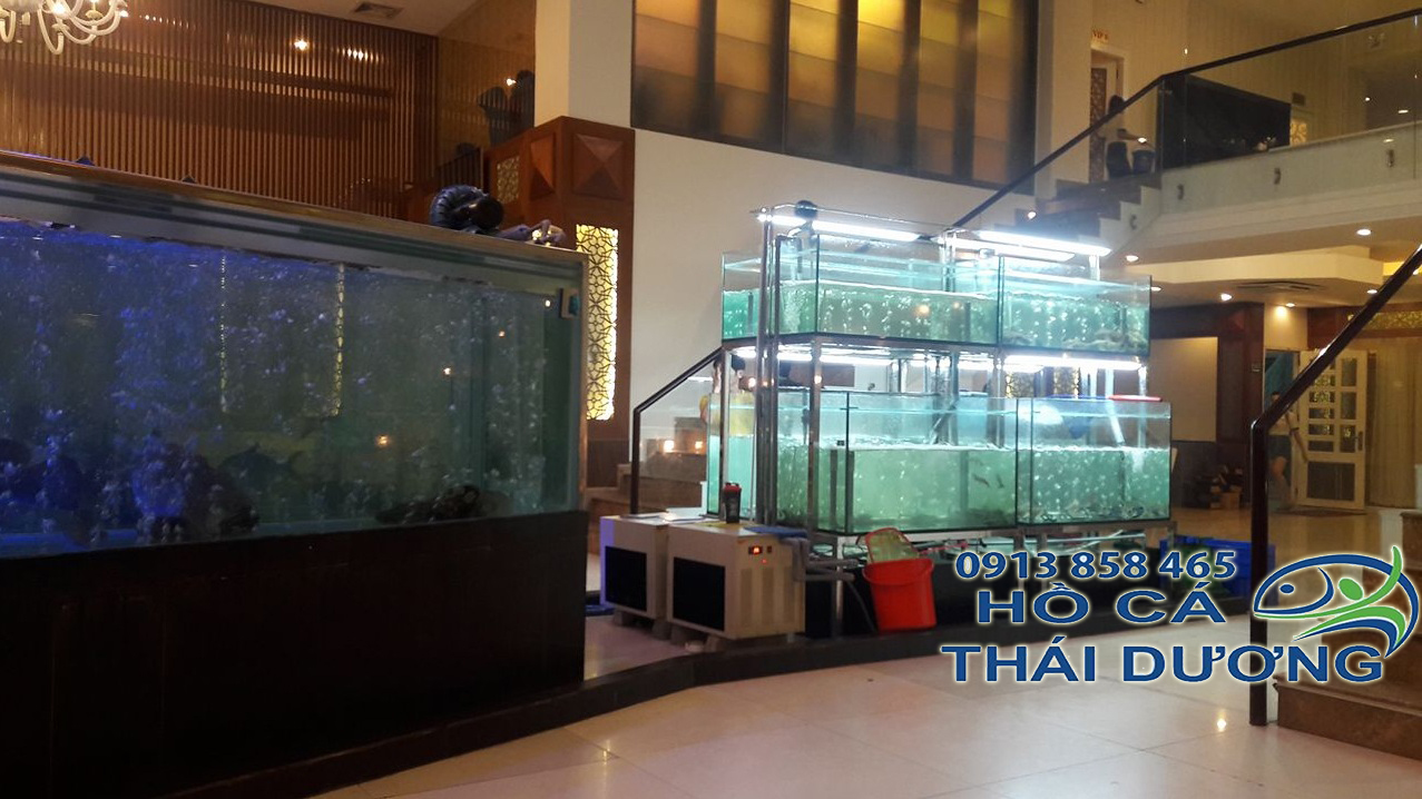 Thiết kế thêm 2 dàn hồ hải sản kết hợp chân inox : dùng để chứa những hải sản tươi sống chế biến cho nhà hàng .